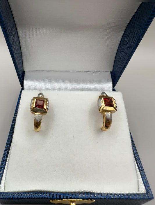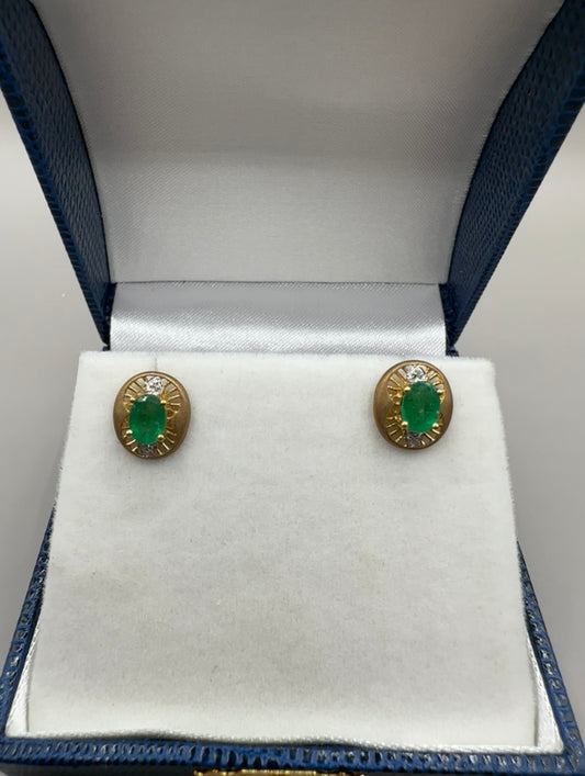 Flower Style Amethyst and Diamond Yellow Gold Earrings