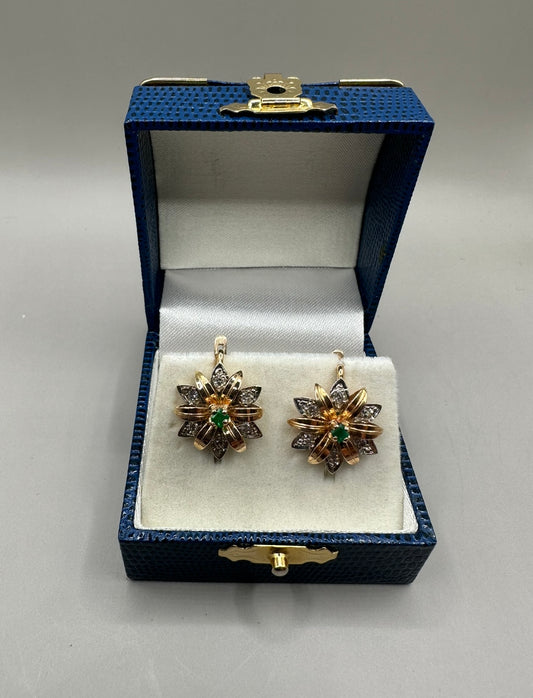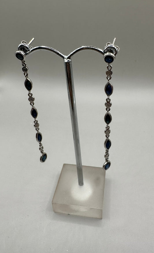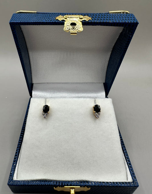 Blue Sapphire Diamond Studded Yellow Gold Earrings