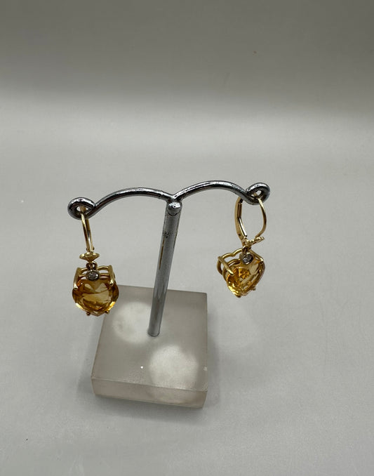 Diamond Heart Shaped Yellow Citrine Yellow Gold Earring