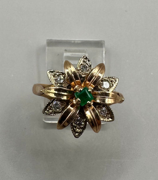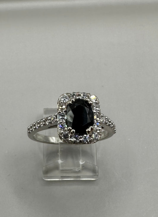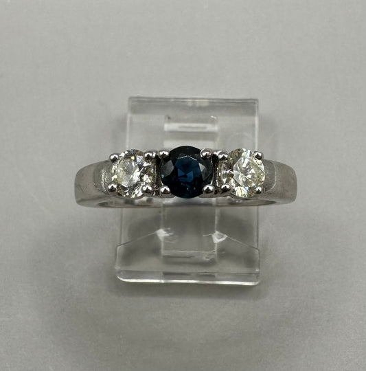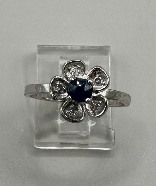 Flower Shaped Blue Sapphire and Diamond White Gold Ring