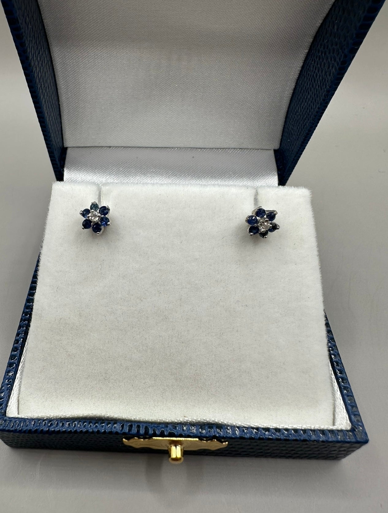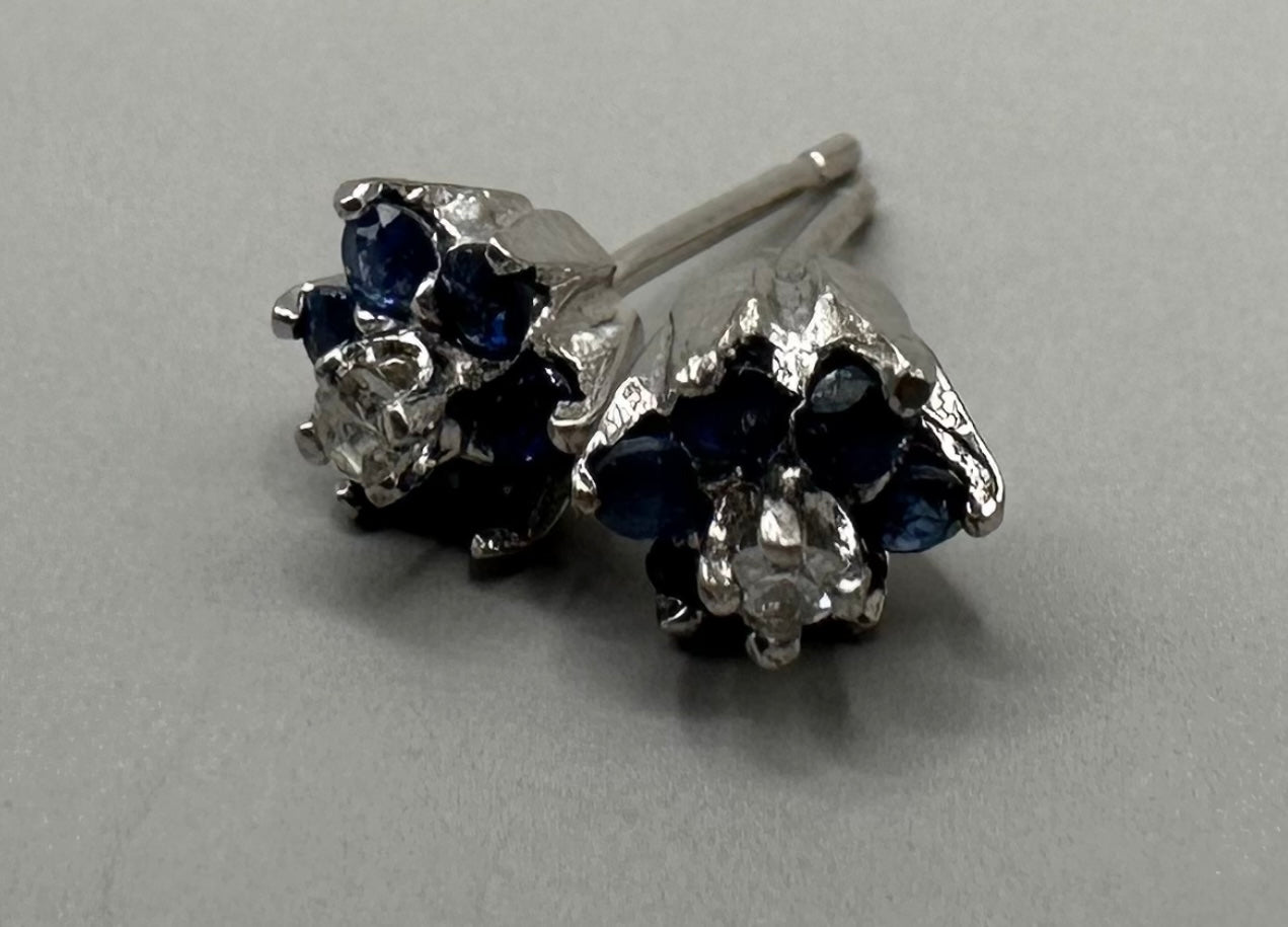 Blue Sapphire Diamond Studded White Gold Earrings