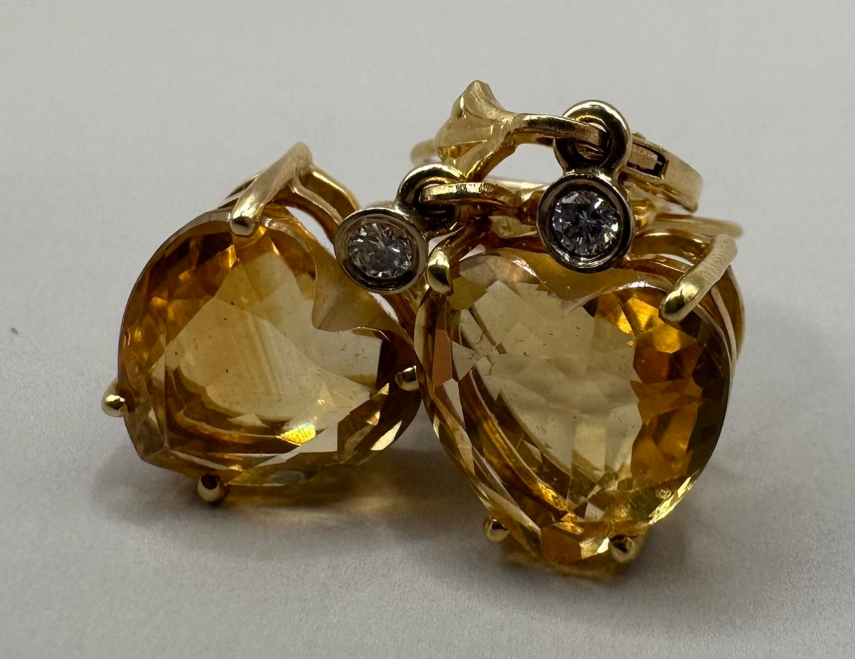 Diamond Heart Shaped Yellow Citrine Yellow Gold Earring