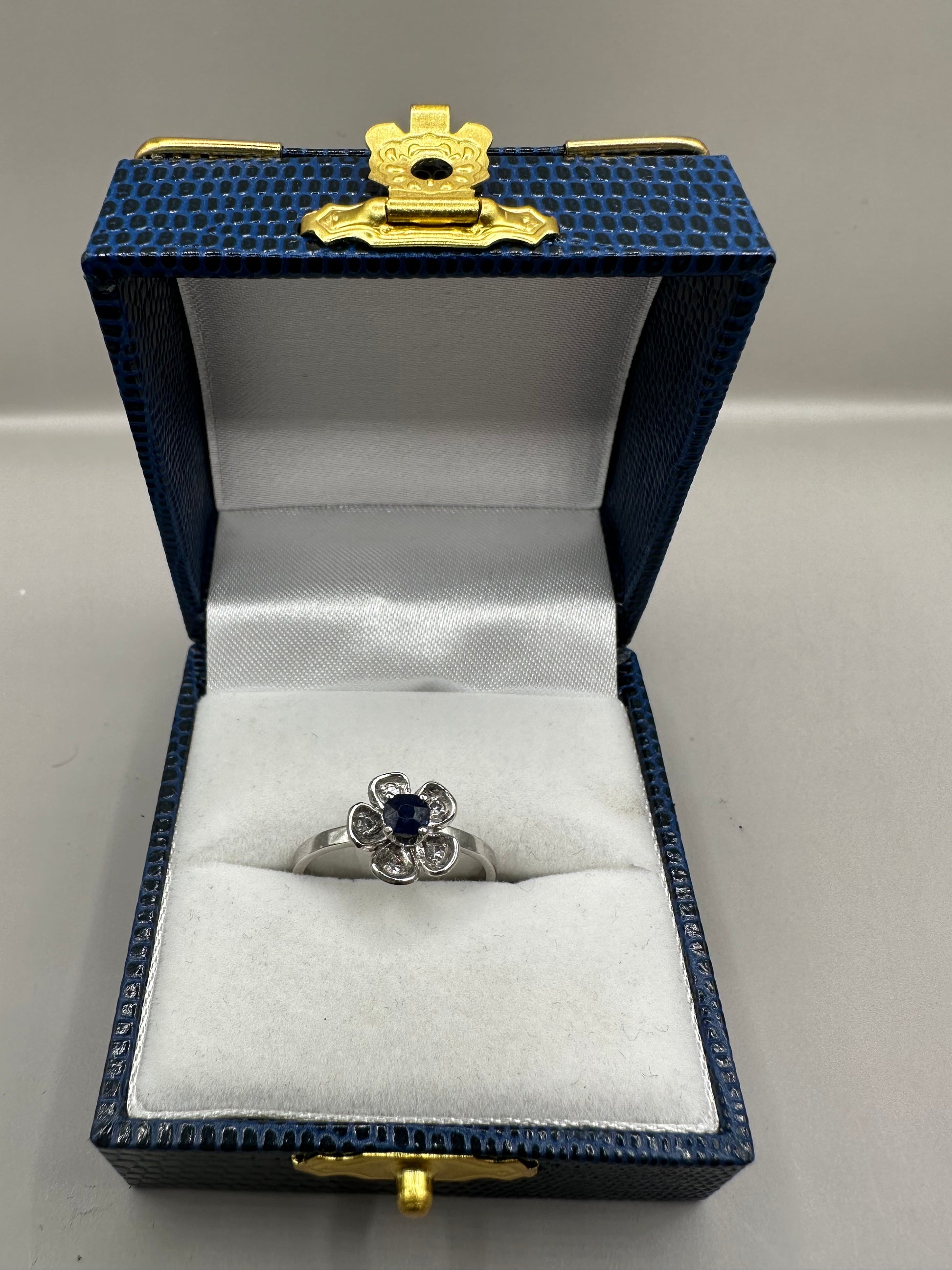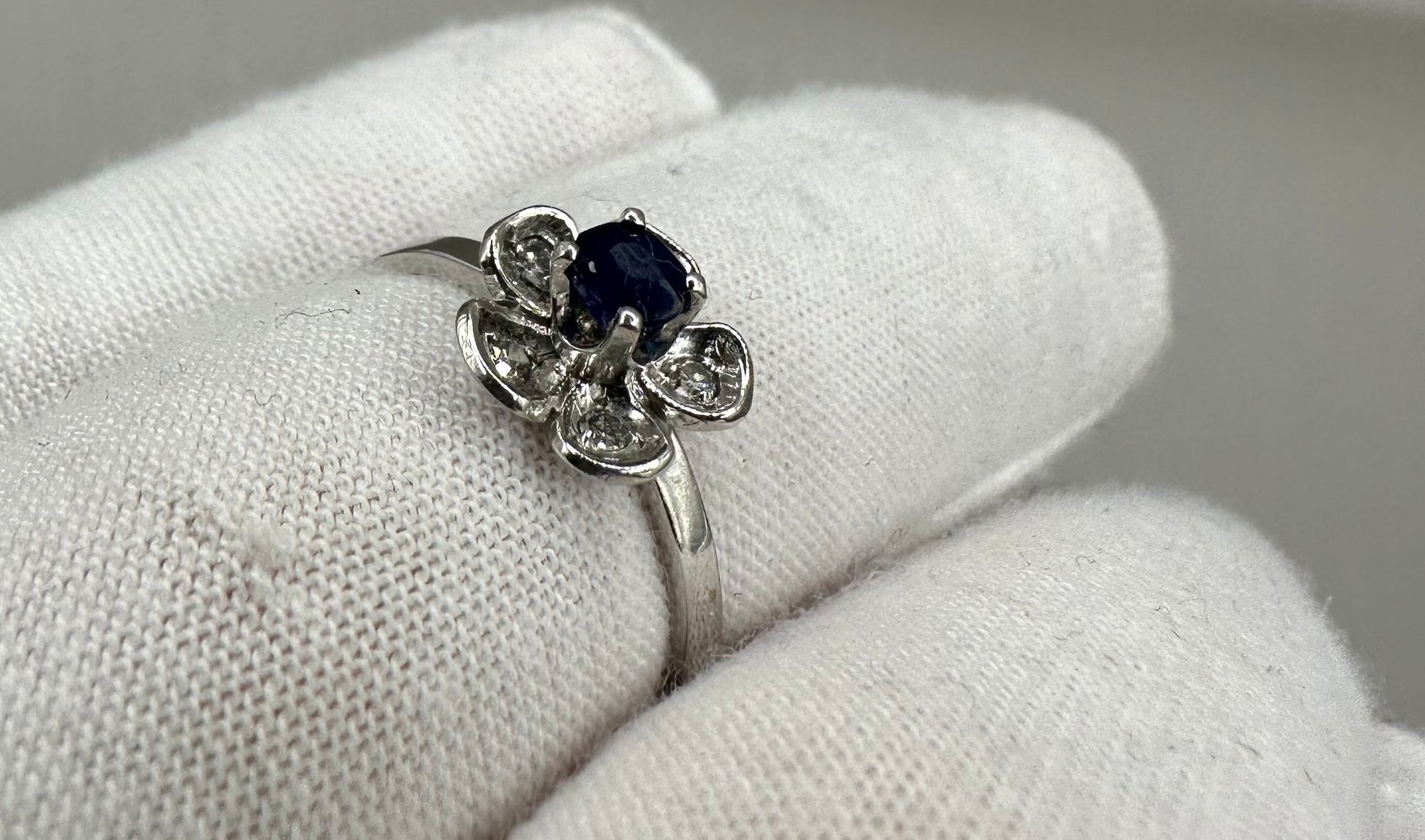 Flower Shaped Blue Sapphire and Diamond White Gold Ring
