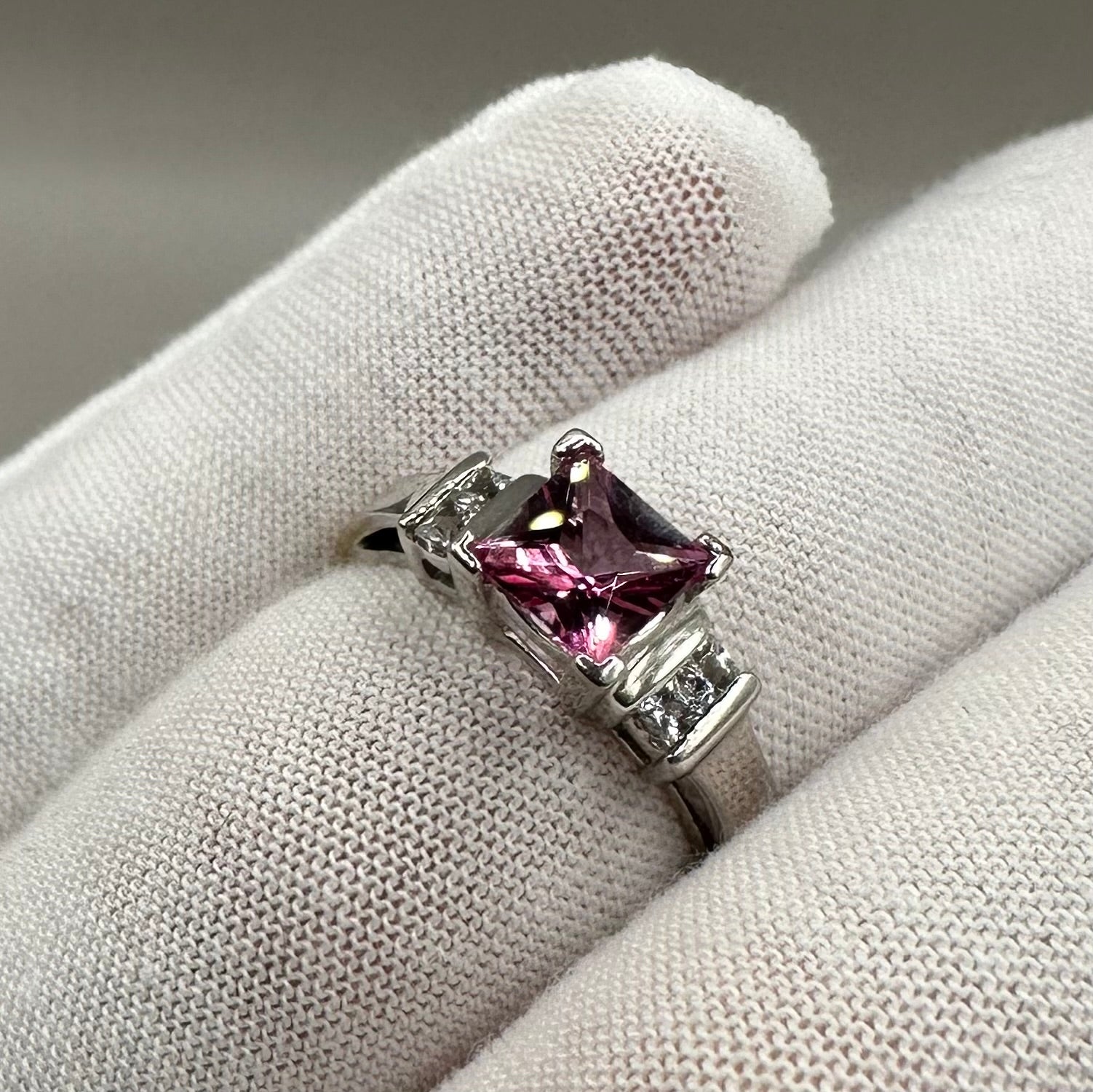 Pink Cubic and White Sapphire White Gold Ringl